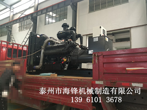 南京六合區某單位在我司泰州海鋒機械采購了一臺500KW上柴股份柴油發電機組,車間技術人員已安裝調試完畢,裝車準備發往目的地,如圖:
